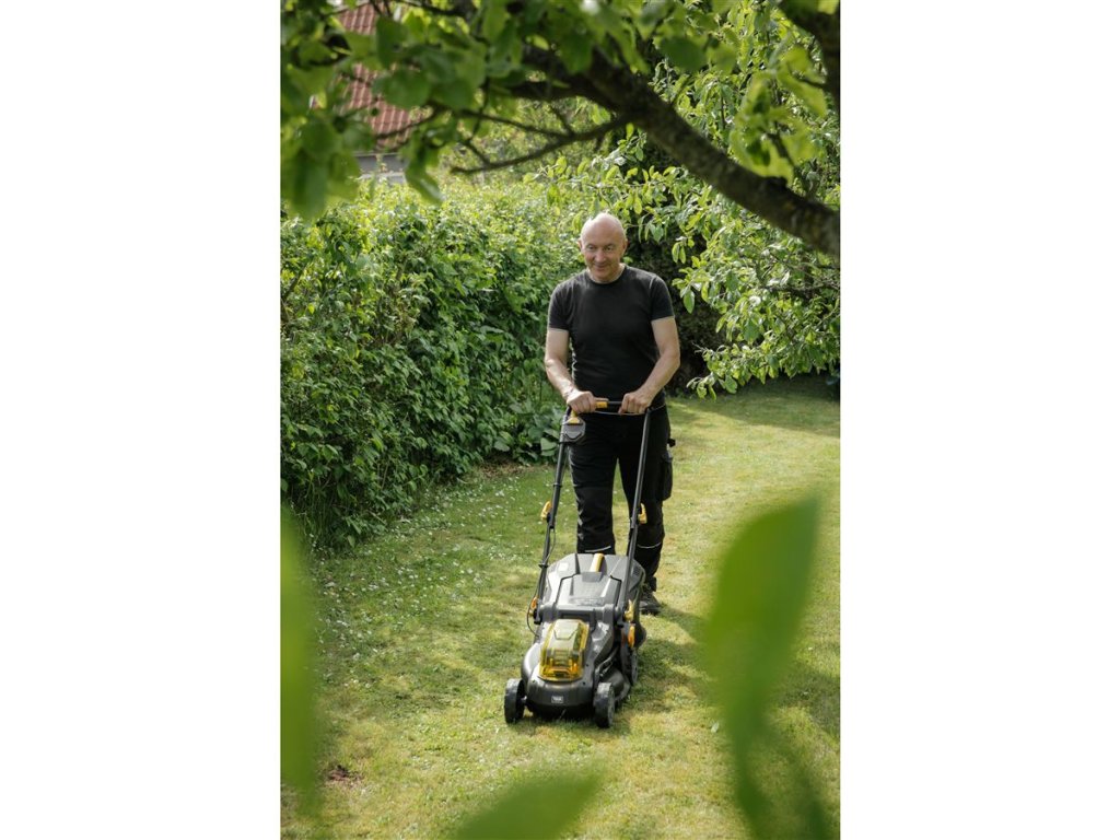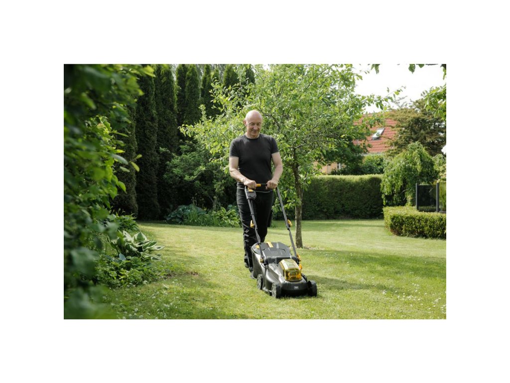 Akumulátorová kosačka sa dodáva s dvoma 20 V / 2 Ah batériami a rýchlonabíjačkou (60 min. na batériu). Je ale potrebné použiť obe batérie súčasne!