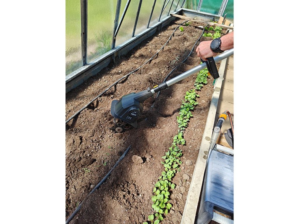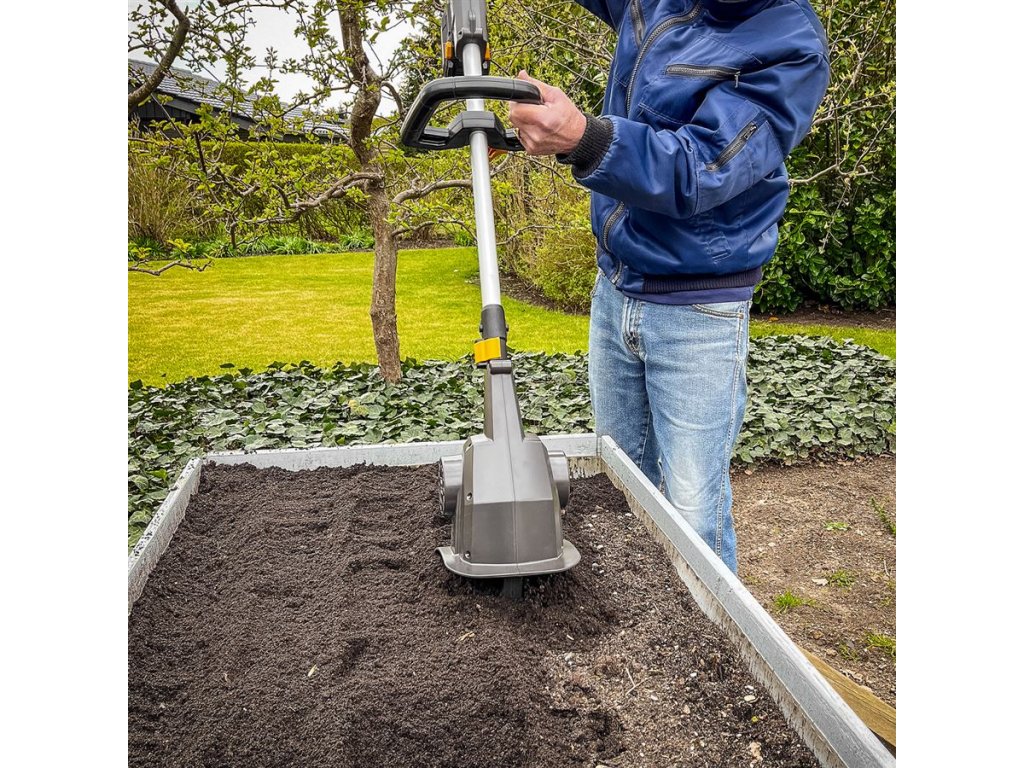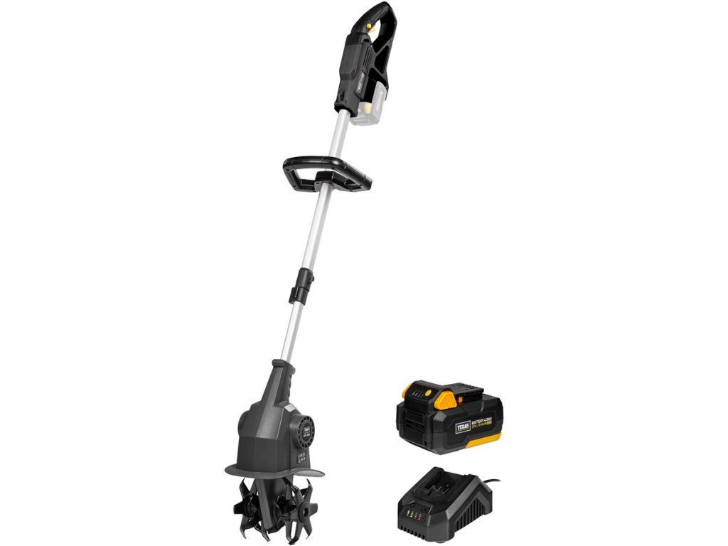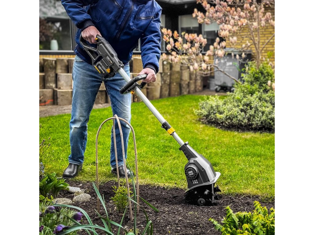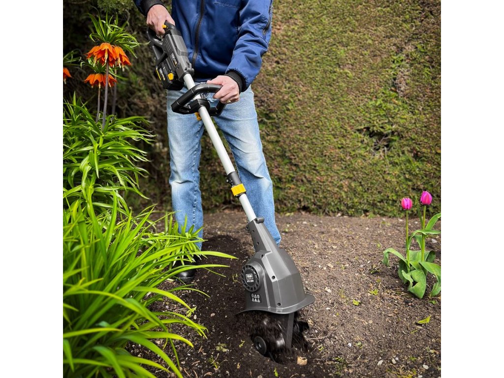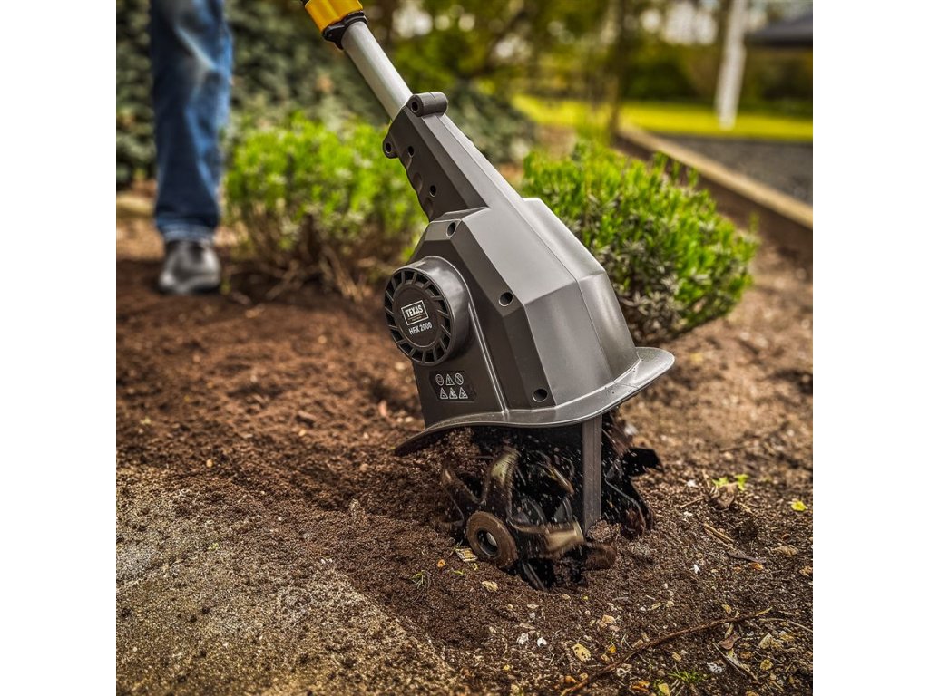 Akumulátorový kultivátor TEXAS HFX 2000 (20V) je vhodný pre prácu na malých plochách. Tento mini záhradný kultivátor je ideálny pre menšie záhony a bylinkové záhrady, kde je málo miesta. HFX 2000 je novo vyvinutý akumulátorový kultivátor, ktorého poháňa 24 oceľových nožov, ktoré sú rozdelené medzi štyri sady nožov. HFX 2000 je malý a má nízku hmotnosť vďaka čomu sa s ním môžete pohybovať kdekoľvek. Je vhodný pre mladých ale aj starších užívateľov. S modelom HFX 2000 získate mimoriadne užívateľsky prívetivý kultivátor, ktorý má navyše niekoľko možností nastavenia, takže si môžete nájsť svoju najpohodlnejšiu pracovnú polohu. Dodáva sa s teleskopickým hriadeľom z hliníka s dĺžkou 38 cm, ktorý je možné plynule nastaviť, takže celková dĺžka kultivátora môže byť až 132 cm a až 170 cm. Na teleskopickej tyči je tiež pomocná rukoväť, ktorá zaisťuje stabilnejšie a bezpečnejšie ovládanie. Pracovná rukoväť je vybavená dvoma tlačidlami, pričom obe musia byť stlačené, aby sa kultivátor spustil, čo zvyšuje vašu bezpečnosť.
