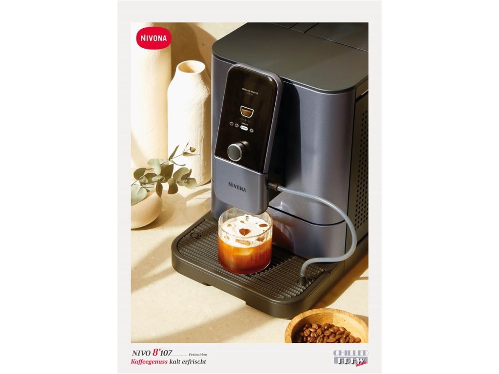 Špeciálny model NIVO 8107 prináša ešte viac spôsobov, ako si vychutnať kávu priamo vo vašej domácnosti. S funkciou Chilled Brew možno pripraviť espresso, kávu a caffé americano pri nízkej teplote. Tento nový proces varenia uvoľňuje z každého kávového zrna špeciálnu arómu, ktorá zaisťuje komplexnejšiu chuť. Inšpiráciou pre tento proces varenia je cold brew, druh kávy, ktorá sa varí za studena alebo pri izbovej teplote. Pri použití tradičného prístroja na varenie za studena to však trvá až dvanásť hodín. Kto má toľko času? To je dôvod, prečo má NIVO 8107 trochu iný prístup k procesu varenia. A stále ponúka bohatý kávový zážitok. Rozdiel medzi Chilled Brew a cold brew nespočíva len v čase prípravy, ale aj v chuťovom zážitku. Zatiaľ čo cold brew ponúka intenzívnu, ale často jemnú chuť, Chilled Brew zaujme svojou sviežosťou a zvýraznenými vôňami, ktoré sa zachovajú vďaka kratšiemu času lúhovania. Výsledkom je osviežujúca, aromatická káva, ktorá sa podáva vychladená priamo do šálky.