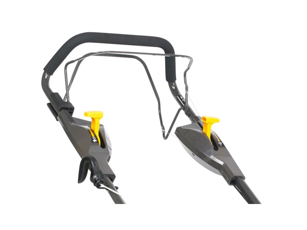 Riadidlá sú komfortne riešené a dajú sa výškovo nastaviť, takže máte možnosť nájsť si tú najpohodlnejšiu pracovnú polohu a s penovým povrchom sa aj pohodlne držia. Premium 5320TR/W sa štartuje potiahnutím lanka, zatiaľ čo držíte štartovaciu rukoväť. Ak stlačíte neskôr aj druhú rukovať, spustí sa pojazd.