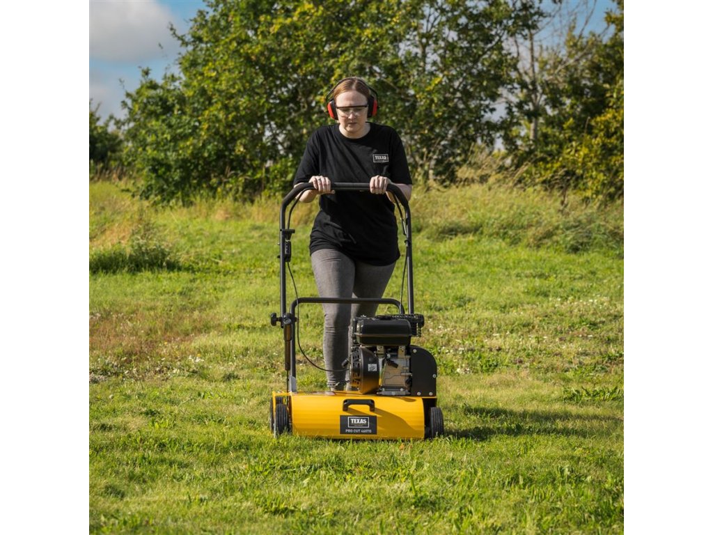 Model Pro Cut 461TG je vybavený silným motorom TEXAS TG725 s výkonom 4,0 kW a 3600 ot./min., ktorý bez problémov zvládne aj rozsiahle plochy s hustým machom. Disponuje nožovým valcom so 48 ,,plávajúcimi,, nožmi (tzv. kladivkami), ktoré efektívne vertikutujú, prevzdušňujú a odstraňujú mach. Nože so šírkou 3 mm sú vyrobené z tvrdenej ocele, čo im zabezpečuje dlhú životnosť a vysokú odolnosť.