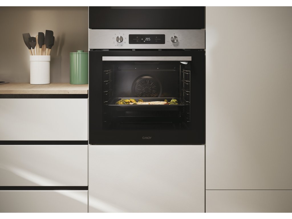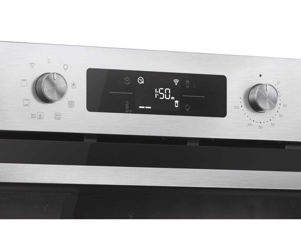 Hlavné vlastnosti Kapacita (l): 78 Energetická trieda A+ Teplotné rozmedzie 30°C-300°C* Spotr. en. Statický program (kWh): 0,98 Spotr. en. Nútená ventilácia (kWh): 0,72 Celkový príkon (W): 3300 Programy pečenia Počet programov 8 + svetlo Vypnutie, Rozmrazovanie, Multilevel – Viacúrovňové pečenie, Grill+ventilátor (eco), Spodný ohrev+ventilátor, Statický+hydrolytické čistenie, Grill, Pizza *Teplota 300°C iba pre program Pizza Funkcia Hydrolytické čistenie - čistenie rúry pomocou pary Ovládanie na displeji – Menu, Programy, +, - Bezpečnosť 2 bezpečnostné sklá Konštrukcia 6 úrovní pečenia Soft Close – tlmené dovieranie dvierok Soft Open - pohodlná manipulácia pri otváraní dvierok Push Pull gombíky + dotykové ovládanie, Bielo podsvietený LED displej Osvetlenie žiarovkou v hornej časti rúry Nerezové drôtené pojazdy na vedenie plechov Click&Clean – pre ľahké čistenie skiel dvierok Príslušenstvo 1x plech (40 mm) 1x rošt