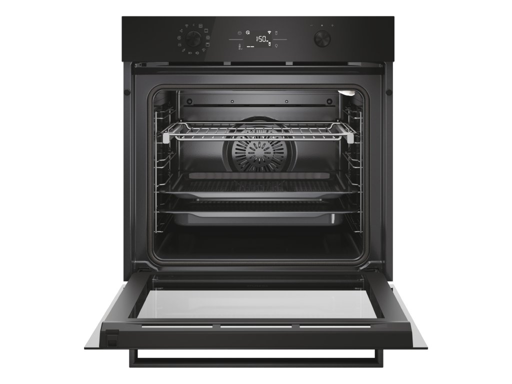 Programy pečenia: Počet programov 12 Eco, Statický, Multilevel (viacúrovňové pečenie), Supergril, Pizza, Mäso, Ryby, Zelenina, Pečivo (all-in), AirFry, Pyro+Hydrolytické čistenie, Wifi *Teplota 300°C iba pre program Pizza Funkcia: Wi-Fi + Bluetooth – možnosť pripojenia k aplikácii hOn a ovládaniu na diaľku Pyrolytické čistenie – čistenie za vysokej teploty Hydrolytické čistenie - čistenie rúry pomocou pary Ovládanie na displeji - Diaľkové ovládanie, osvetlenie, nastavenie času a nastavenie teploty/rýchleho predhriatia Bezpečnosť: 4 bezpečnostné sklá Konštrukcia: 6 úrovní pečenia Soft Close – tlmené dovieranie dvierok Push Pull gombíky + dotykové ovládanie, Bielo podsvietený displej Osvetlenie žiarovkou v hornej časti rúry Nerezové drôtené pojazdy na vedenie plechov Click&Clean – pre ľahké čistenie skiel dvierok Príslušenstvo: 2x plech (20 mm, 40 mm) 1x rošt 1x teleskopické výsuvy 1x Fritovací kôš AirFry – pre zdravšie vyprážanie s malým množstvom tuku
