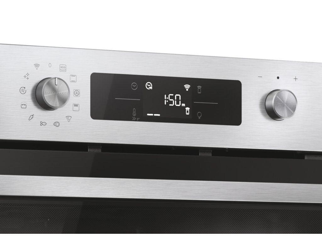 Hlavné vlastnosti Kapacita (l) 78 Energetická trieda A++ Teplotné rozmedzie 30 ° C-300 ° C * Spotr. en. Statický program (kWh) 0,99 Spotr. en. Nútená ventilácia (kWh) 0,54 Celkový príkon (W) 3300 Programy pečenia Počet programov 12 Eco, Statický, Multilevel (viacúrovňové pečenie), Supergril, Pizza, Mäso, Ryby, Zelenina, Pečivo (all-in), AirFry, Pyro+Hydrolytické čistenie, Wifi *300°C iba pre program Pizza Funkcia Wi-Fi + Bluetooth – možnosť pripojenia k aplikácii hOn a ovládaniu na diaľku Pyrolytické čistenie – čistenie za vysokej teploty Hydrolytické čistenie - čistenie rúry pomocou pary Ovládanie na displeji - Diaľkové ovládanie, osvetlenie, nastavenie času a nastavenie teploty/rýchleho predhriatia Bezpečnosť 4 bezpečnostné sklá Konštrukcia 6 úrovní pečenia Push Pull gombíky + dotykové ovládanie, Bielo podsvietený displej Osvetlenie žiarovkou v hornej časti rúry Nerezové drôtené pojazdy na vedenie plechov Click&Clean – pre ľahké čistenie skiel dvierok Príslušenstvo 1x plech (40 mm) 1x rošt 1x teleskopické výsuvy 1x Fritovací kôš AirFry – pre zdravšie vyprážanie s malým množstvom tuku