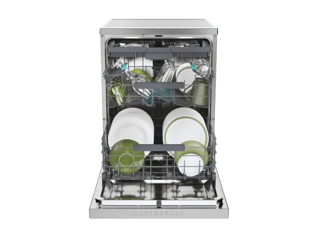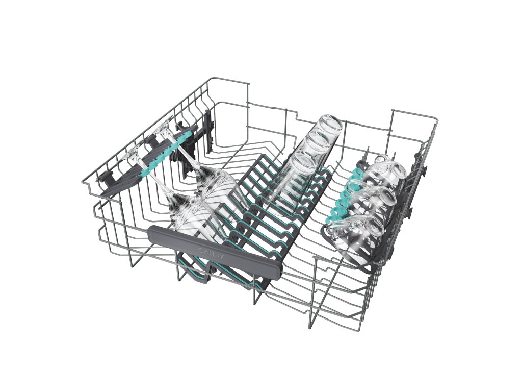 Výklopné držiaky šálky a pohárov v hornom koši, Polohovanie horného koša, sklopiteľné držiaky na taniere v spodnom koši, Horný výsuvný tretí kôš na príbory, Power Wash ostrekovacie rameno