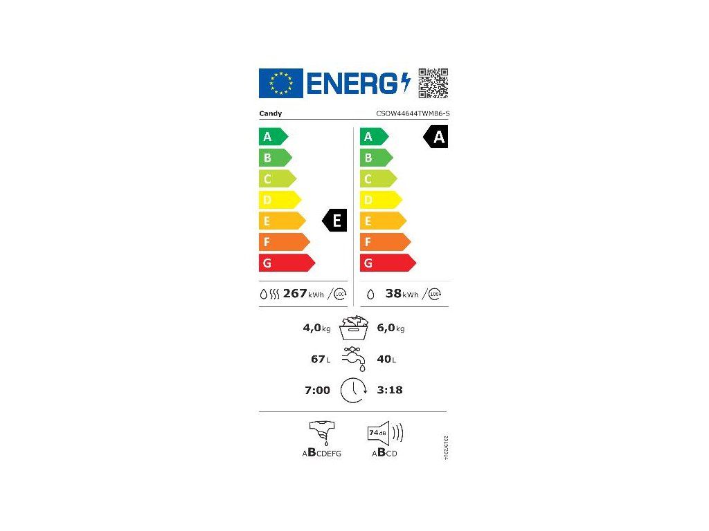 Trieda energetickej účinnosti sušenia / prania: E/A