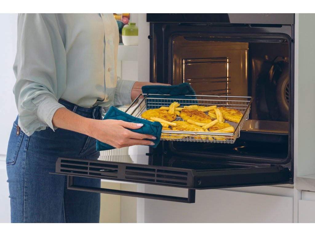 Hlavné vlastnosti Kapacita (l) 70 Energetická trieda A Spotr. en. Statický program (kWh) 1,10 Spotr. en. Nútená ventilácia (kWh) 0,80 Celkový príkon (W) 2400 Programy pečenia Počet programov 9 + WiFi Svetlo, Rozmrazovanie, Multilevel (pravý horúci vzduch), Statický, Gril + ventilátor (AirFry), Spodný ohrev + ventilátor, Gril, Statický + ventilátor, Pyro Funkcia Konektivita – pripojenie k aplikácii hOn Pyrolytické čistenie – čistenie rúry za vysokej teploty Aquactiva – čistenie pomocou pary (hydrolytické čistenie rúry) Displej biely + dotykové ovládanie PushPull gombík na nastavenie programov pečenia PushPull gombík na nastavenie teploty Minútka Bezpečnosť 4 bezpečnostné sklá Konštrukcia Soft Close – pomalé dovieranie dvierok Push-Pull gombíky Osvetlenie žiarovkou v zadnej časti rúry Nerezové drôtené pojazdy na vedenie plechov Príslušenstvo 2x plech (35 mm, 15 mm) 1x rošt 1x teleskopické výsuvy 1x fritovací kôš AirFry - zdravšie vyprážanie (240 ° C)