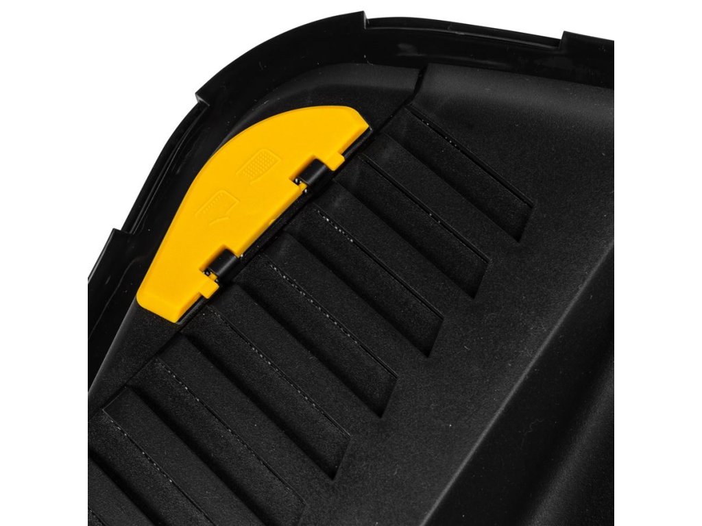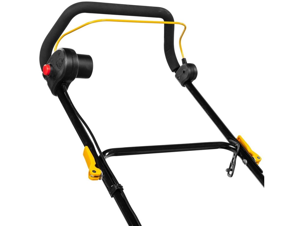 Rukoväť je navrhnutá pre pohodlné držanie počas práce a je výškovo nastaviteľná, takže si ju prispôsobíte podľa potreby. Rukoväť sa dá zároveň sklopiť, aby kosačka zaberala menej miesta pri uskladnení. Samotná kosačka má aj praktické držadlo na jednoduché prenášanie pred a po použití.