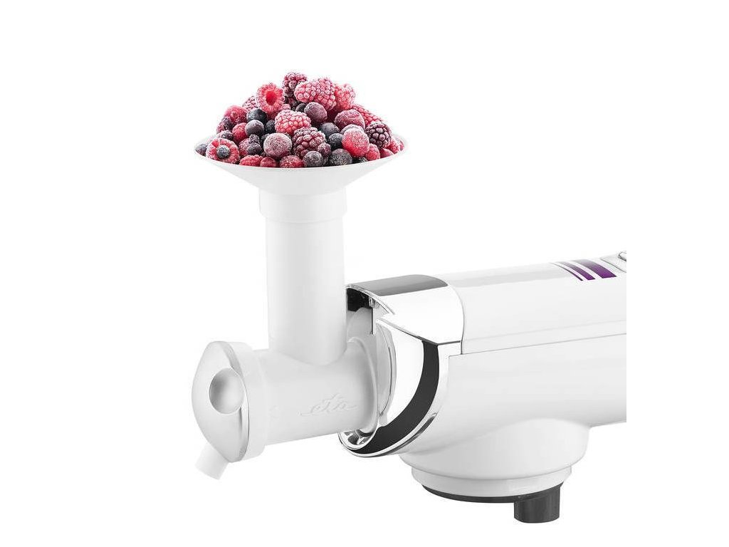 ZMRZLINOVAČ umožňuje rýchlu a kvalitnú výrobu domácej zmrzliny ľadového krému a mrazeného jogurtu špirálový podávač z vysoko pevného plastu 36 ks nerezových nožov spracovávajúcich suroviny na jemnú konzistenciu plniací otvor umožňuje vkladať veľké kusy surovín pechovadlo, násypka jednoduchá údržba vďaka kompletne rozoberateľnému mechanizmu možnosť umývania jednotlivých dielov v umývačke na riad príslušenstvo ku kuchynskému robotu: ETA 0038 Gratus Kuliner, ETA 0028 Gratus, ETA 0023 Gratussino, ETA0128 Gustus , ETA 0030 Meno, ETA0033 Mezo, ETA2075 Ambo farba: biela Ďalšie parametre Príslušenstvo robotazmrzlinovač Rozmery výrobkuŠírka výrobku12.0 cm Výška výrobku19.5 cm Hĺbka výrobku13.5 cm Hmotnosť výrobku 0.3 kg Rozmery balenia Šírka balenia20.0 cm Výška balenia8.0 cm Hĺbka balenia16.5 cm Váha balenia0.5 kg