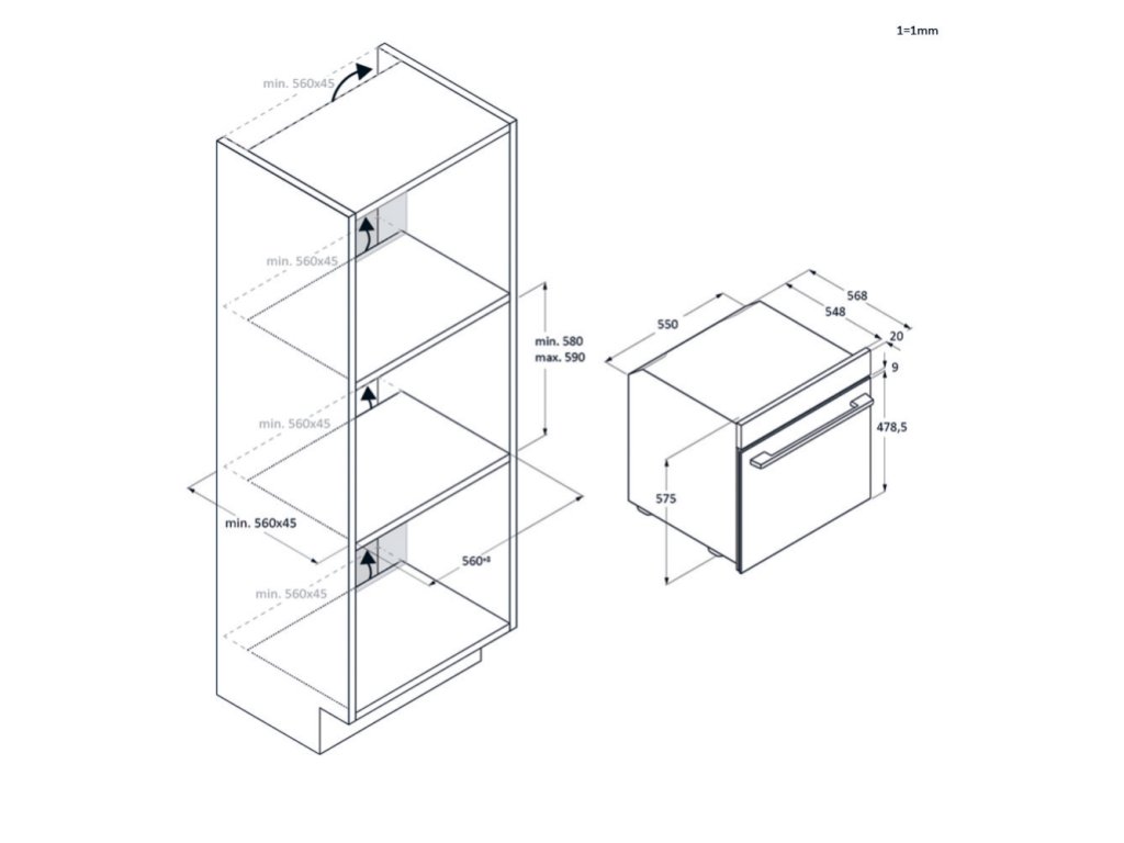 Konštrukcia 6 úrovní pečenia Nerezové postranné pojazdy Click&Clean - pre ľahké čistenie skiel dvierok Dotykové ovládanie (Basic UX) + PushPull (Diaľkové ovládanie, Osvetlenie, Nastavenie času a teploty, Rýchly predohrev) SoftClose – tlmené dovieranie dvierok 1x osvetlenie v hornej časti Príslušenstvo 1× plech – 20 mm 1× plech – 40 mm 1× rošt 1x teleskopické výsuvy Parametre: Kód: 33704153 EAN: 8059019101903 Farba: Čierne sklo Pripojenie: Kábel s vidlicou 230V Rozmery výrobku V × Š × H (mm): 595 × 595 × 568 Čistá váha výrobku (kg): 32,3 Rozmery balenia V × Š × H (mm): 665 × 620 × 646 Hmotnosť s obalom (kg): 34,1