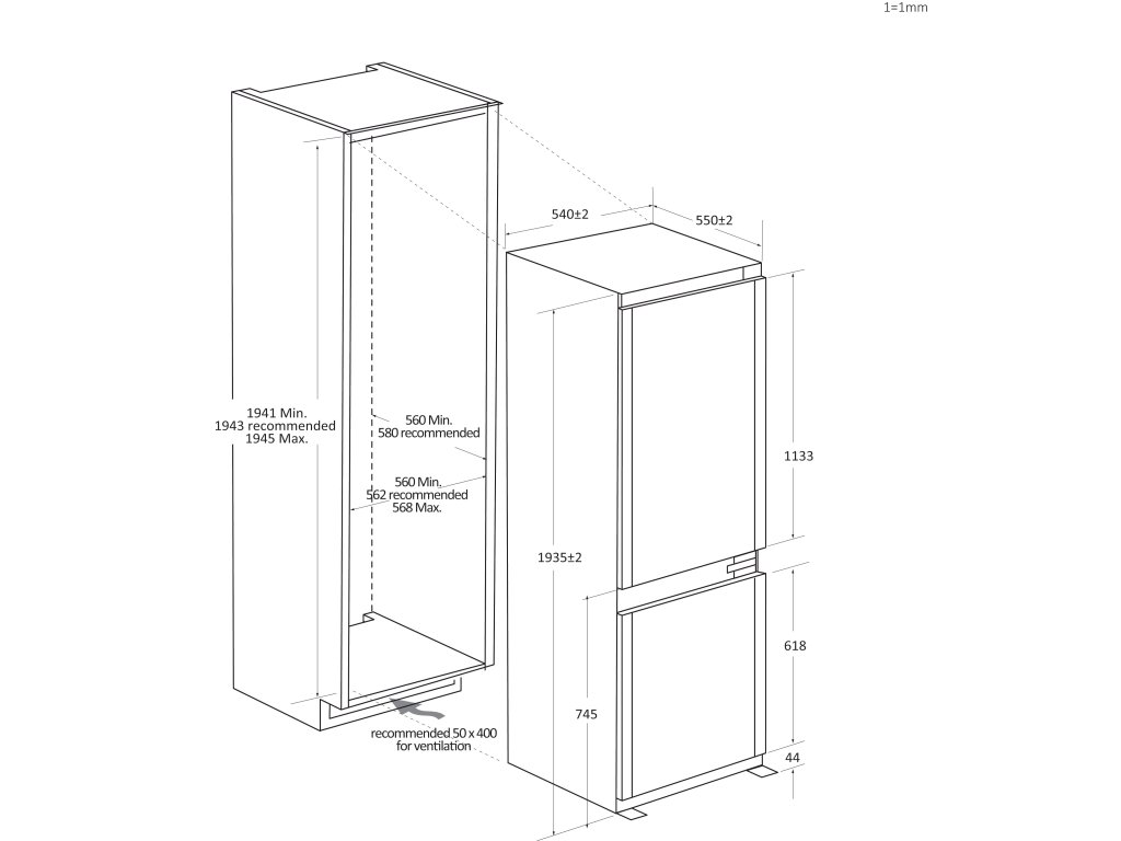 Rozmery výrobku V × Š × H (mm): 1935 × 540 × 550