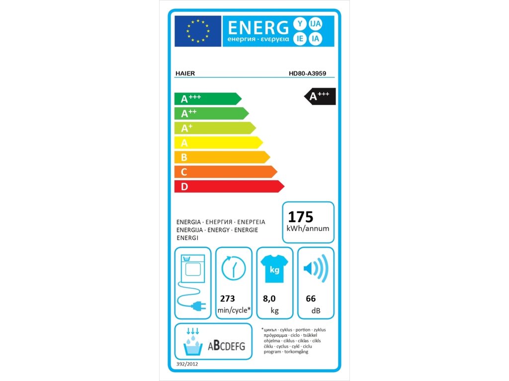 Hlavné vlastnosti Kapacita bavlna (kg) 8 Energetická trieda A+++ Spotr. en. Program bavlna plná náplň (kWh) 1,43 Spotr. en. Program bavlna čiastočná náplň (kWh) 0,85 Ročná spotr. energie (kWh/rok) 175 Doba sušenia Program bavlna Do skrine plná náplň (min) 273 Hlučnosť sušenia (dB(A)) 66 Technológia Wifi + Bluetooth pripojenie - možnosť bezdotykového pripojenia k Wifi a ovládanie sušičky cez aplikáciu hOn s viac ako 20 ďalšími programami a funkciami Aplikácia hOn navrhne najlepší program pre starostlivosť o vaše odevy Kompatibilný s hlasovými aplikáciami Alexa (Amazon) a Google (v ENG) Tepelné čerpadlo Invertorový kompresor – nízka spotreba energie a hlučnosť Záruka na kompresor 12 rokov Hygienická funkcia - automaticky nastaví teplotu sušenia na najvyššiu možnú úroveň a po ukončení programu sušenia automaticky pokračuje ďalšiu 1 hodinu v sušení pre väčšiu hygienu bielizne. Pillow Drum – šetrný bubon s vankúšikovými výstupkami i-time – možnosť predĺžiť dobu sušenia podľa potreby Program „i-Refresh“- Osvieženie – horúci vlhký vzduch uvoľňuje vlákna, zmäkčuje ich, odstraňuje pachy, pokrčenie a jemný prach 3 úrovne senzorového sušenia – Extra suché, Do skrine, Na žehlenie Programy 12 programov + Wifi (diaľkové ovládanie): Bavlna, Mix, Syntetika, Rýchle sušenie, Časované sušenie, Jemné, Diaľkové ovládanie, Vlna, Uteráky, Prikrývky, Šport, i-Refresh Funkcia Odložený štart programu, Detský zámok, Nastavenie teploty sušenia (3 teploty + studený vzduch), Nastavenie úrovne sušenia (3 úrovne), Proti pokrčeniu, Hygienické, i-time, Kontrolka zvuková signalizácia (možnosť vypnúť), Kontrolka čistenia filtra, Kontrolka vyprázdnenia nádrže na vodu, Bezpečnosť Digitálny dotykový displej; Invertorový kompresor; Objem bubna 112 l; Materiál bubna Nerez Vypúšťacia hadička súčasťou; Nastaviteľné nožičky; Chladivo R134a Logistické dáta Farba Biela s čiernymi dvierkami Rozmery výrobku v x š x h (mm) 850 x 595 x 600 Čistá váha výrobku (kg) 51 Rozmery balenia v x š x h (mm) 890 x 668 x 748 Hmotnosť s obalom (kg) 57 Info list