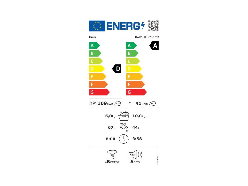 Trieda energetickej účinnosti sušenia / prania: D/A