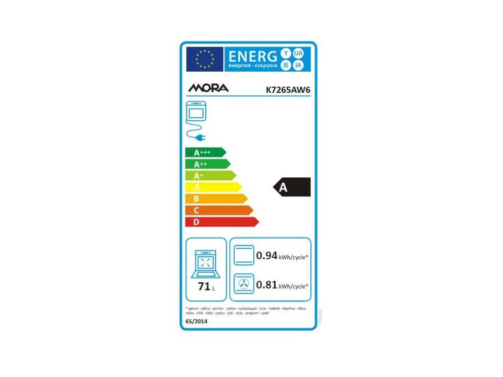kombinovaný sporák • energetická trieda A • objem 71 l • teplovzdušná rúra s kruhovým telesom • Eco Clean čistenie rúry • 11 prednastavených programov • rýchly predohrev – 200 °C za 5 minút • bezpečnostné prvky: Stop Gas, detský zámok, chladné dvierka • príslušenstvo: XXL hlboký pekáč, rošt • V × Š × H: 85 × 60 × 60 cm
