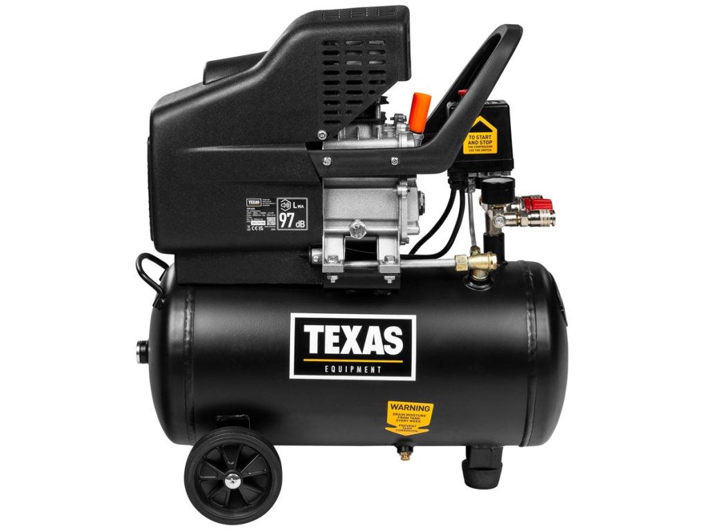 Kompresor TEXAS TKP 2400 (24l) je olejom mazaný všestranný kompresor s dvojitým výstupom na fúkanie, plnenie vzduchu, zošívacie pištole a iné menšie náradie na stlačený vzduch. Ideálne je pre malé domáce kutilské projekty.