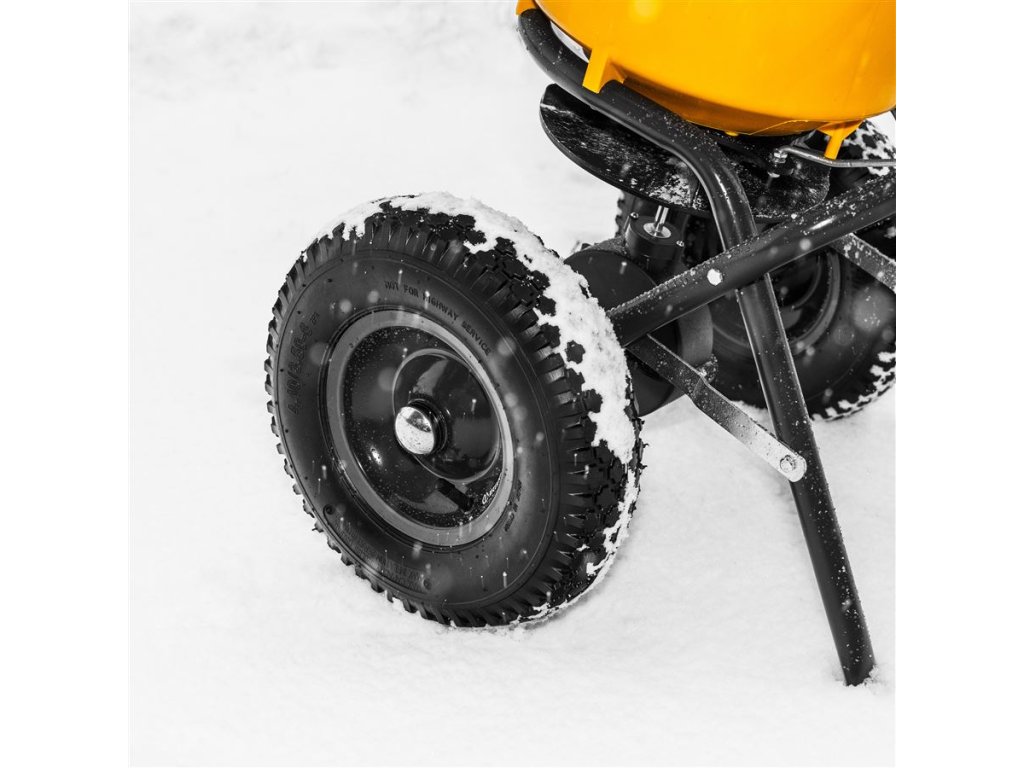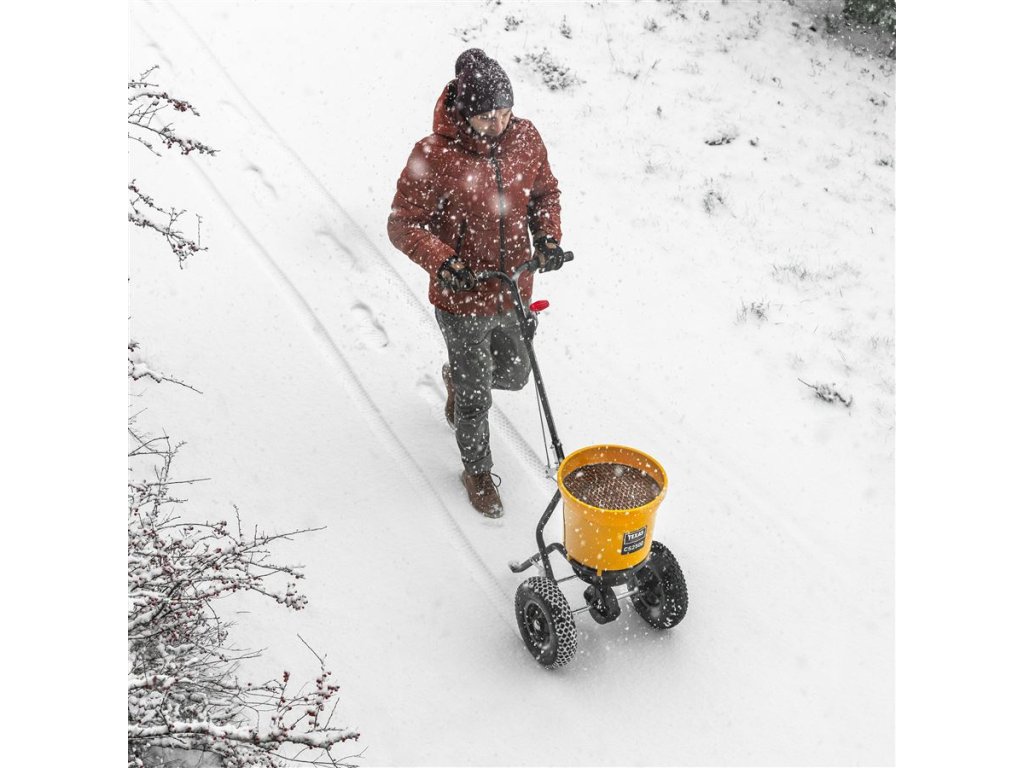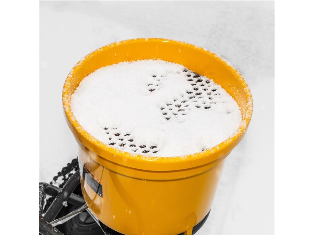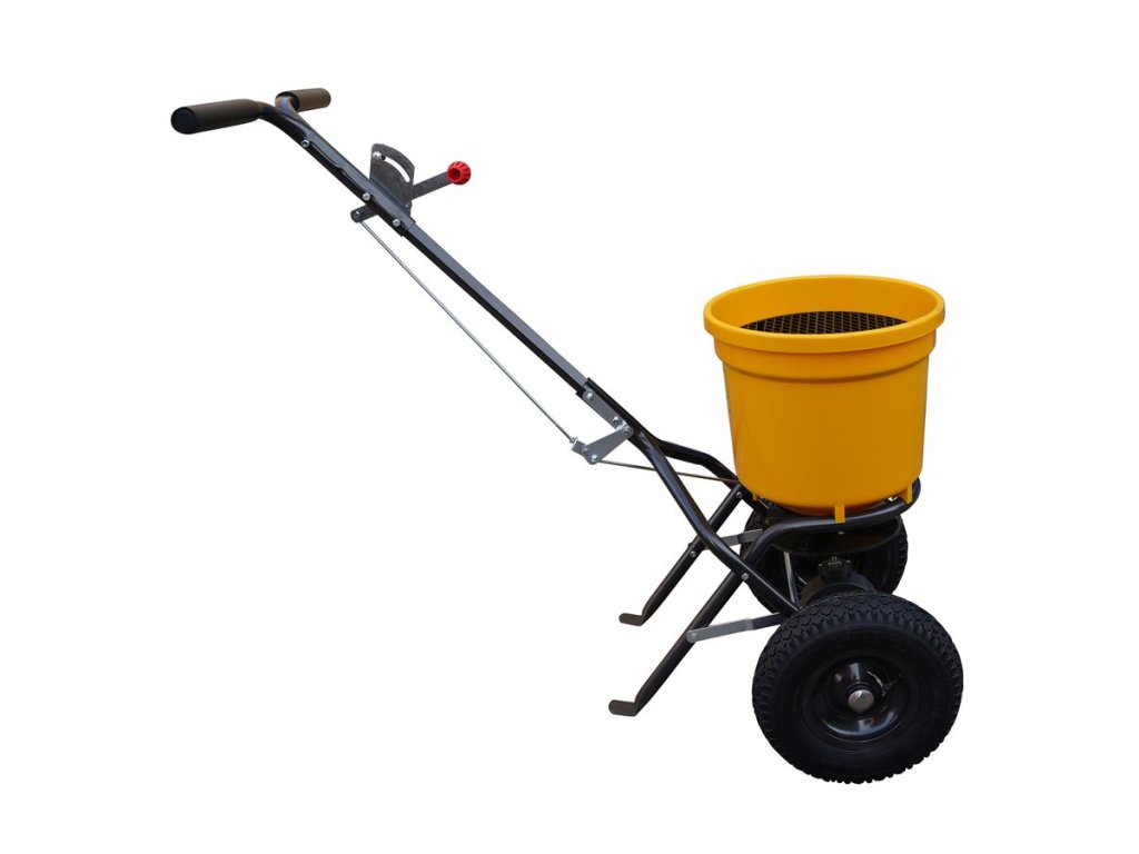 Odstredivé rozmetadlo s rámom z pozinkovanej ocele s plastovou nádobou, ktorá má objem 25 litrov. Pojazd zabezpečujú pneumatické gumené kolieska, takže lepšie priľne na klzký povrch. Dávkovanie je možné upraviť z riadidiel. Sypač je užitočný na posyp soli a piesku v zime a hnojiva alebo semien v lete.