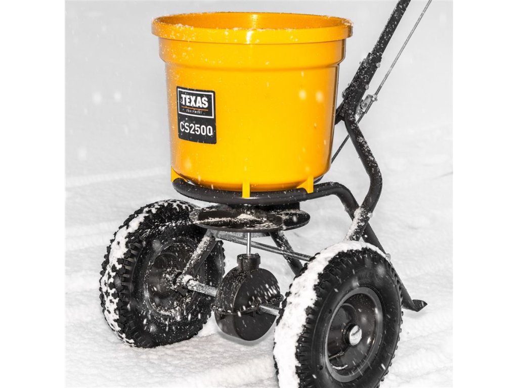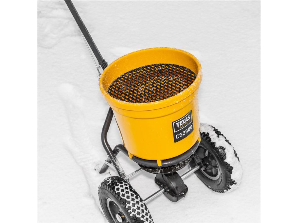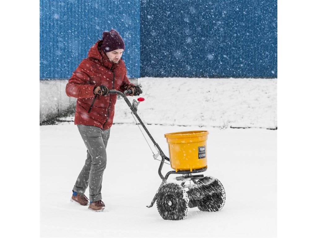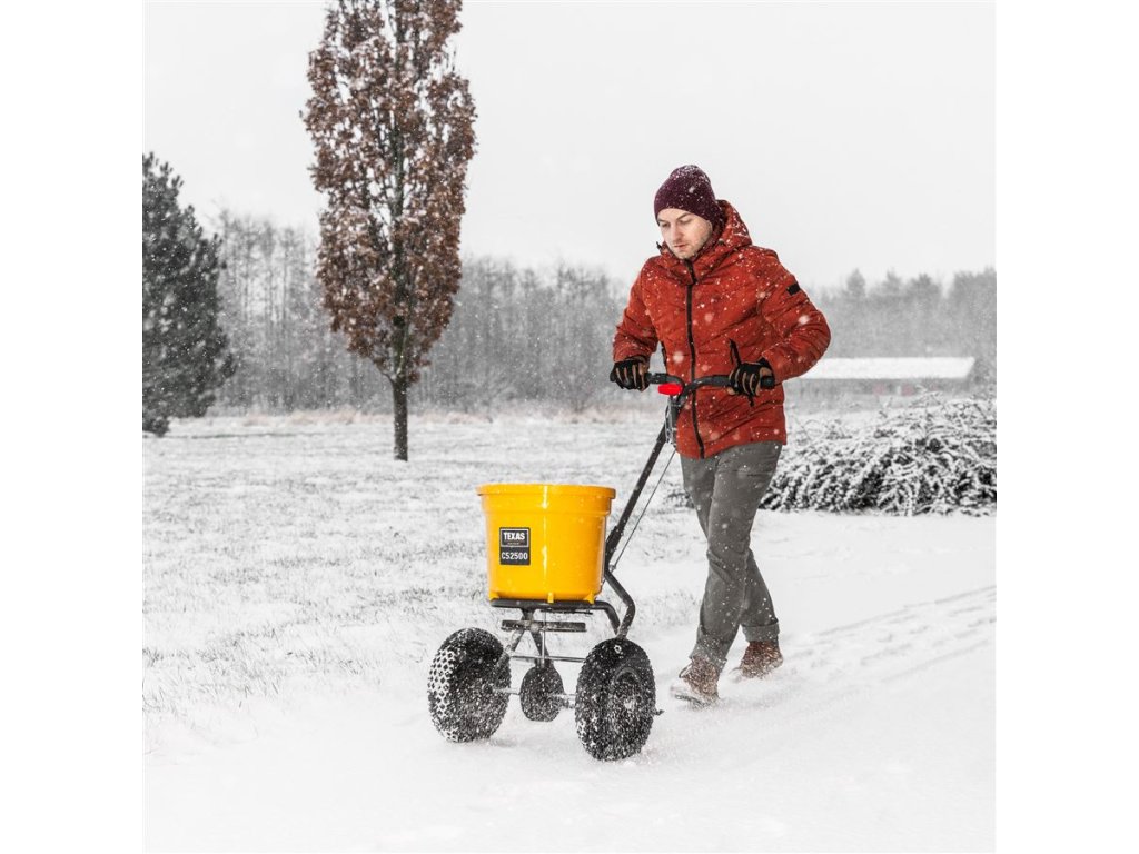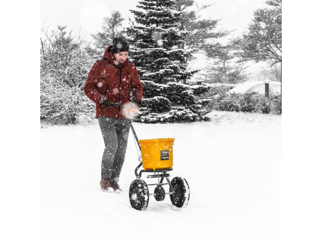 Odstredivé rozmetadlo s rámom z pozinkovanej ocele s plastovou nádobou, ktorá má objem 25 litrov. Pojazd zabezpečujú pneumatické gumené kolieska, takže lepšie priľne na klzký povrch. Dávkovanie je možné upraviť z riadidiel. Sypač je užitočný na posyp soli a piesku v zime a hnojiva alebo semien v lete.